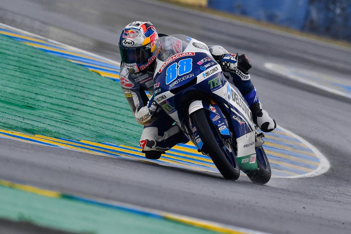 Με περισσότερο νερό στην πίστα βγήκαν οι αναβάτες της Moto3 στο Le Mans για τις ΕΔ2 του 5ου Γύρου της αγωνιστικής σεζόν.